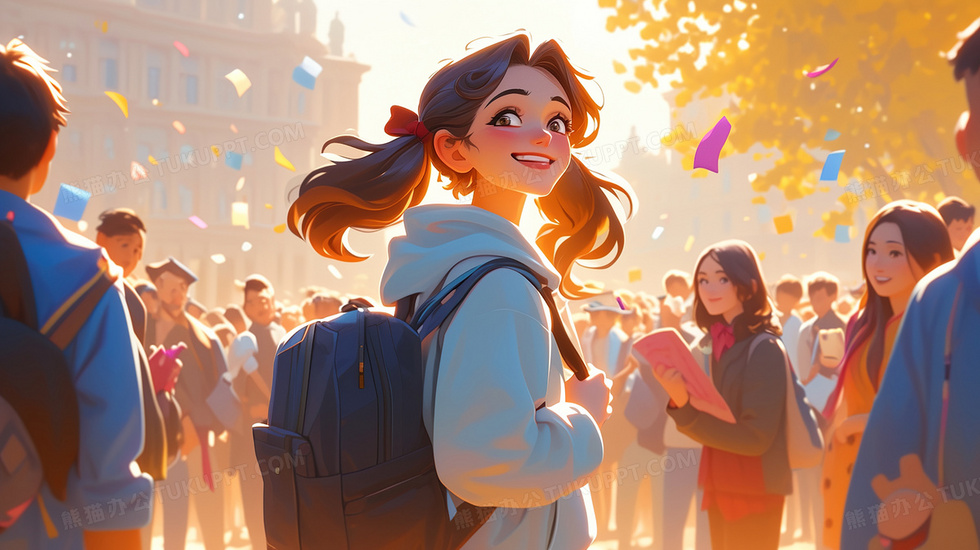 本作品内容为毕业离开学校的女孩插画, 格式为 jpg, 大小2 MB, 图片尺寸为2912 x 1632, 源文件无水印, 欢迎使用熊猫办公。 如认为平台内容涉嫌侵权,可通过邮件:tousu@tukuppt.com提出书面通知,我们将及时处理。