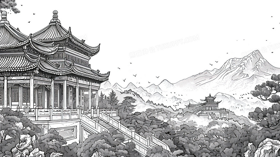 本作品内容为公园树林湖泊旁的凉亭线稿插画, 格式为 jpg, 大小4 MB, 图片尺寸为2912 x 1632, 源文件无水印, 欢迎使用熊猫办公。 如认为平台内容涉嫌侵权,可通过邮件:tousu@tukuppt.com提出书面通知,我们将及时处理。