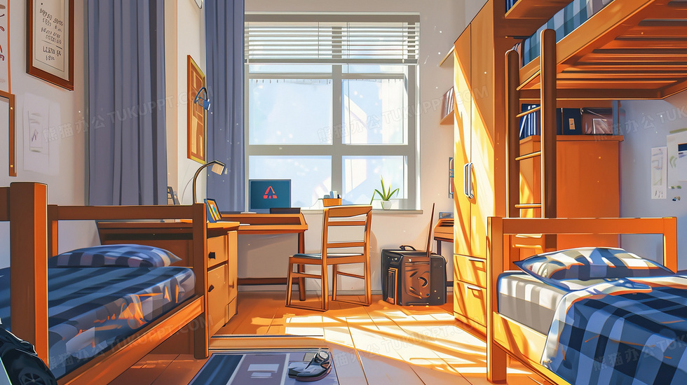 本作品内容为卡通风大学学生宿舍场景插画, 格式为 jpg, 大小3 MB, 图片尺寸为2912 x 1632, 源文件无水印, 欢迎使用熊猫办公。 如认为平台内容涉嫌侵权,可通过邮件:tousu@tukuppt.com提出书面通知,我们将及时处理。