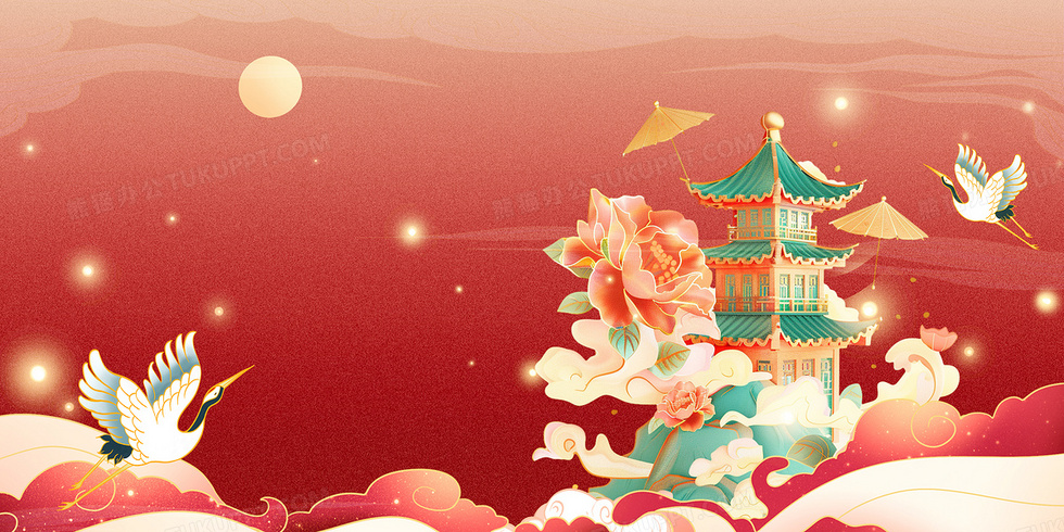 本作品内容为红色中国风国潮建筑地标背景, 格式为 psd, 大小70 MB, 图片尺寸为4722 x 2361, 作品中背景图片无需修改, 源文件无水印,可以直接使用, 欢迎使用熊猫办公。 如认为平台内容涉嫌侵权,可通过邮件:tousu@tukuppt.com提出书面通知,我们将及时处理。