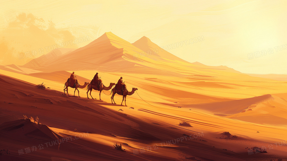 本作品内容为金色沙漠骆驼背景, 格式为 jpg, 大小4 MB, 图片尺寸为2912 x 1632, 作品中背景图片无需修改, 源文件无水印,可以直接使用, 欢迎使用熊猫办公。 如认为平台内容涉嫌侵权,可通过邮件:tousu@tukuppt.com提出书面通知,我们将及时处理。
