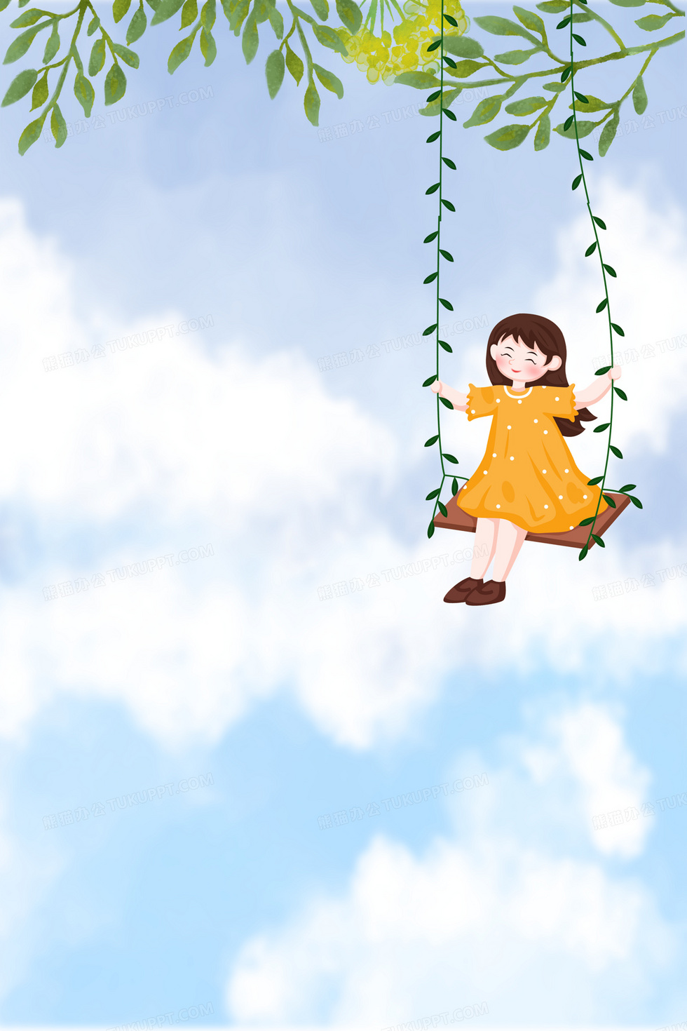 本作品内容为童年天空合成荡秋千背景, 格式为 psd, 大小13 MB, 图片尺寸为3543 x 5314, 作品中背景图片无需修改, 源文件无水印,可以直接使用, 欢迎使用熊猫办公。 如认为平台内容涉嫌侵权,可通过邮件:tousu@tukuppt.com提出书面通知,我们将及时处理。