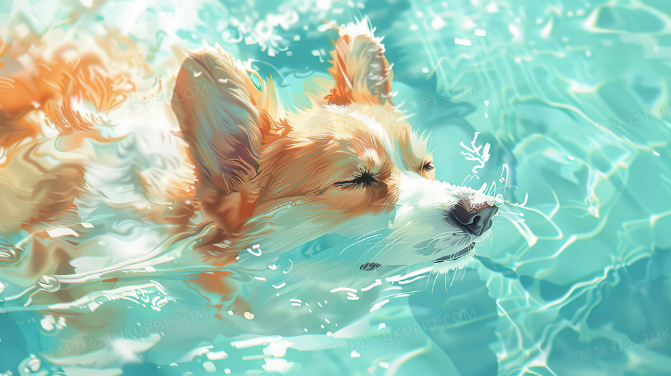 本作品内容为水池中游泳的小狗插画, 格式为 jpg, 大小3 MB, 图片尺寸为2912 x 1632, 源文件无水印, 欢迎使用熊猫办公。 如认为平台内容涉嫌侵权,可通过邮件:tousu@tukuppt.com提出书面通知,我们将及时处理。