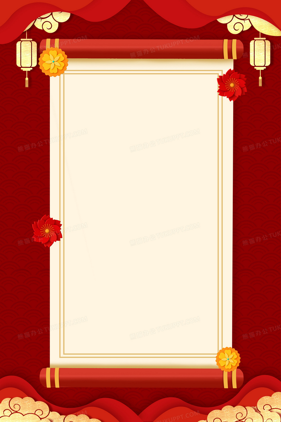 本作品内容为红色新年喜庆卷轴背景, 格式为 psd, 大小27 MB, 图片尺寸为3543 x 5315, 作品中背景图片无需修改, 源文件无水印,可以直接使用, 欢迎使用熊猫办公。 如认为平台内容涉嫌侵权,可通过邮件:tousu@tukuppt.com提出书面通知,我们将及时处理。