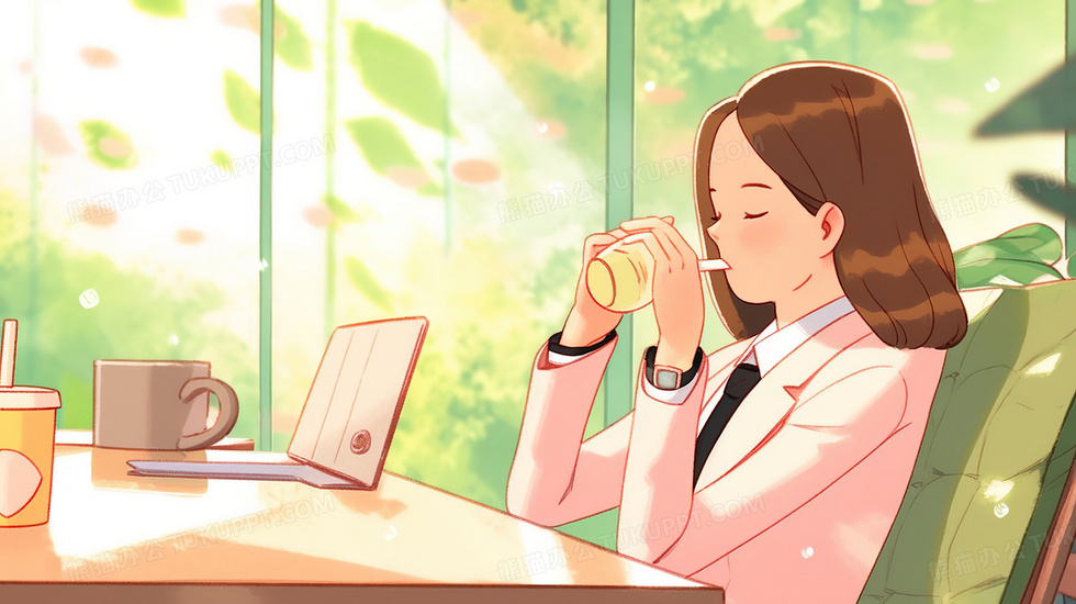 本作品内容为办公室里喝咖啡的女白领插画, 格式为 jpg, 大小2 MB, 图片尺寸为2912 x 1632, 源文件无水印, 欢迎使用熊猫办公。 如认为平台内容涉嫌侵权,可通过邮件:tousu@tukuppt.com提出书面通知,我们将及时处理。