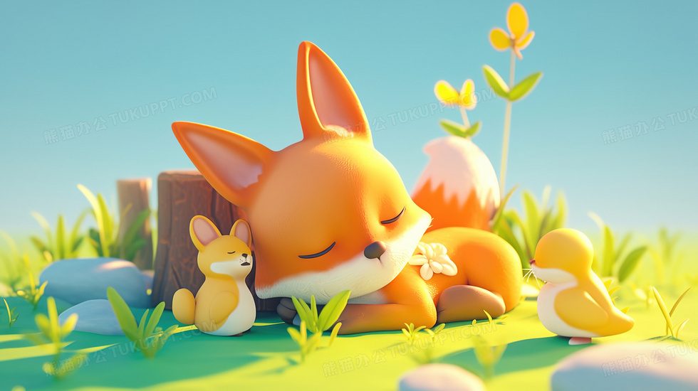 本作品内容为3D立体草地睡觉的小动物插画, 格式为 jpg, 大小2 MB, 图片尺寸为2912 x 1632, 源文件无水印, 欢迎使用熊猫办公。 如认为平台内容涉嫌侵权,可通过邮件:tousu@tukuppt.com提出书面通知,我们将及时处理。