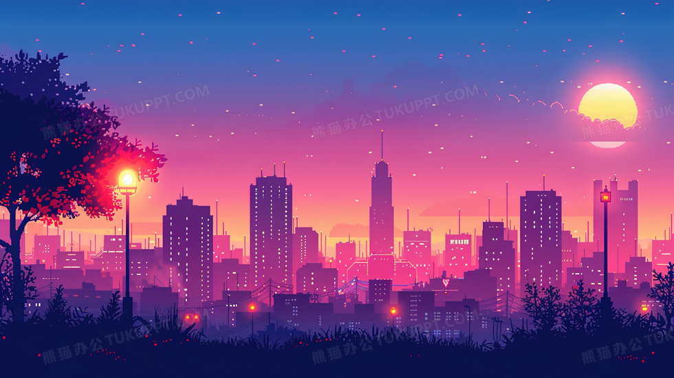 本作品内容为唯美夜空城市夜景插画, 格式为 jpg, 大小3 MB, 图片尺寸为2912 x 1632, 源文件无水印, 欢迎使用熊猫办公。 如认为平台内容涉嫌侵权,可通过邮件:tousu@tukuppt.com提出书面通知,我们将及时处理。