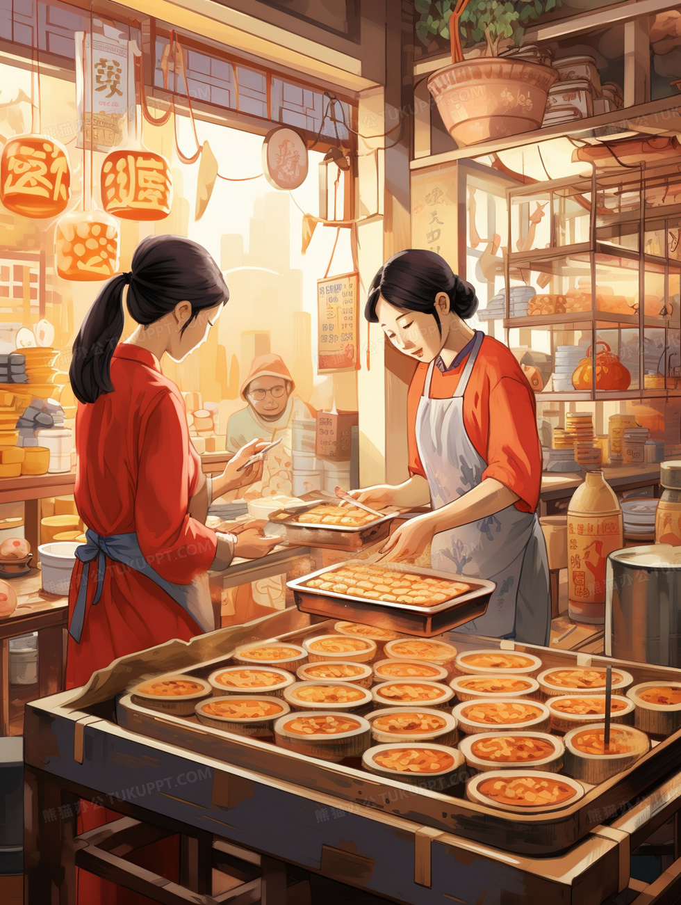 本作品内容为忙碌的集市食品商铺美食插画, 格式为 jpg, 大小3 MB, 图片尺寸为1856 x 2464, 源文件无水印, 欢迎使用熊猫办公。 如认为平台内容涉嫌侵权,可通过邮件:tousu@tukuppt.com提出书面通知,我们将及时处理。