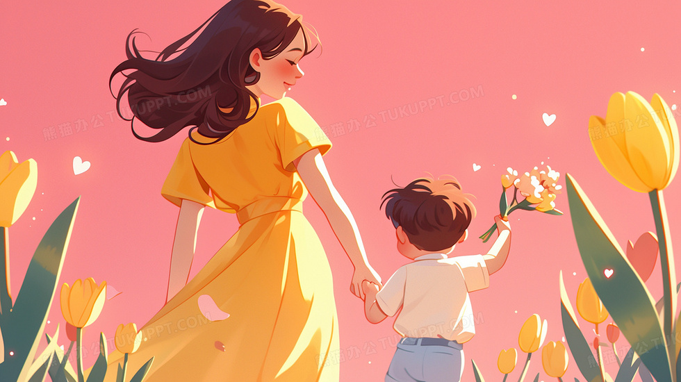 本作品内容为粉色花丛中妈妈和孩子插画, 格式为 jpg, 大小3 MB, 图片尺寸为2912 x 1632, 源文件无水印, 欢迎使用熊猫办公。 如认为平台内容涉嫌侵权,可通过邮件:tousu@tukuppt.com提出书面通知,我们将及时处理。