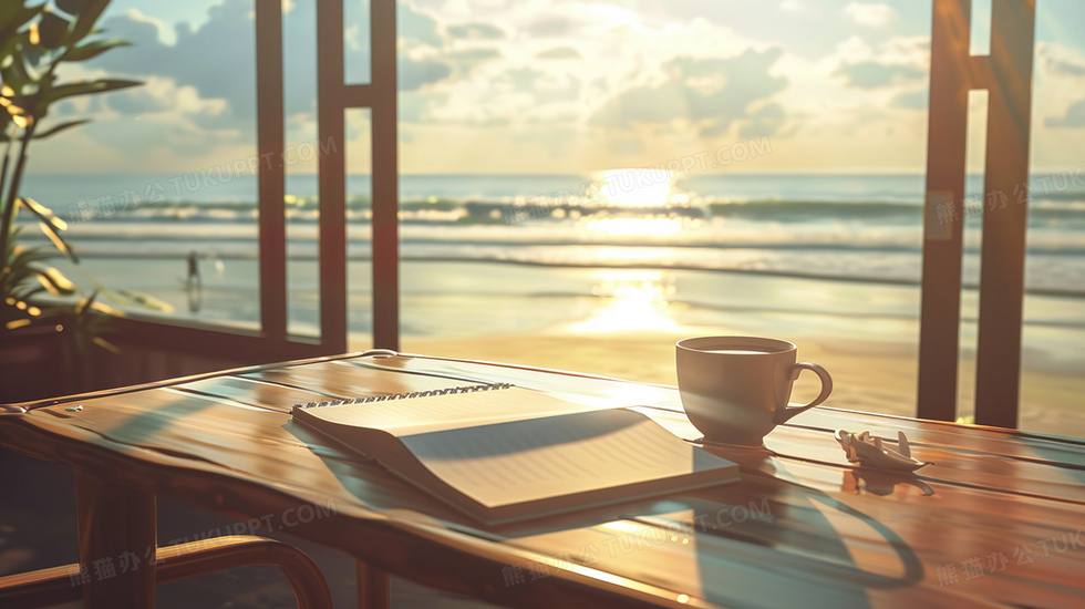 本作品内容为海边木桌上的笔记本与咖啡插画, 格式为 jpg, 大小2 MB, 图片尺寸为2912 x 1632, 源文件无水印, 欢迎使用熊猫办公。 如认为平台内容涉嫌侵权,可通过邮件:tousu@tukuppt.com提出书面通知,我们将及时处理。