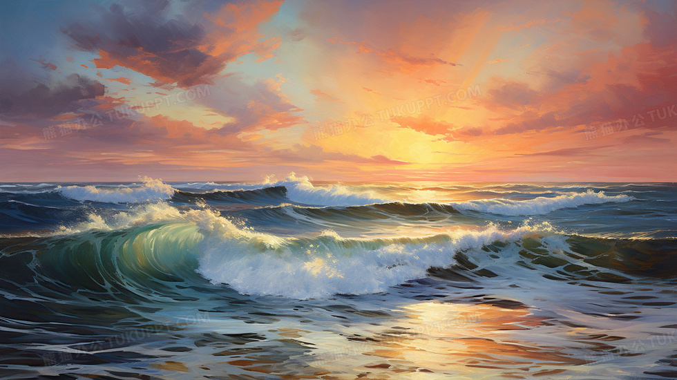 本作品内容为油画质感海浪背景, 格式为 jpg, 大小4 MB, 图片尺寸为2912 x 1632, 作品中背景图片无需修改, 源文件无水印,可以直接使用, 欢迎使用熊猫办公。 如认为平台内容涉嫌侵权,可通过邮件:tousu@tukuppt.com提出书面通知,我们将及时处理。