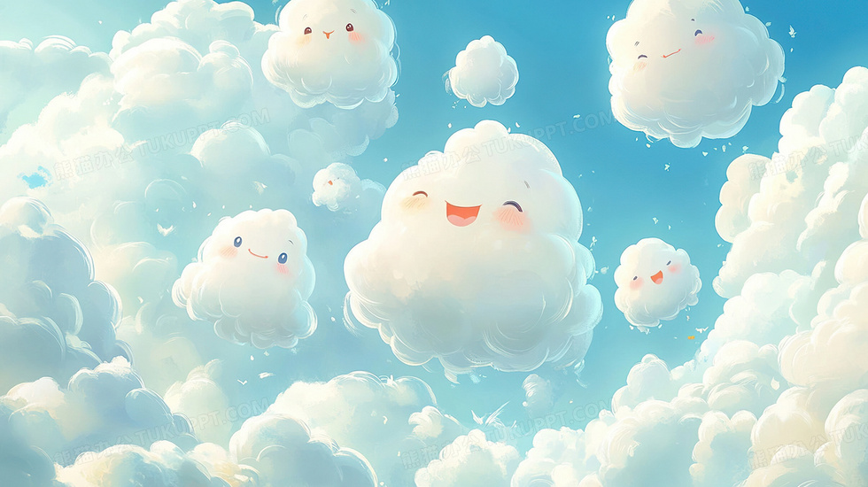 本作品内容为多云天气情况拟人化插画, 格式为 jpg, 大小3 MB, 图片尺寸为2912 x 1632, 源文件无水印, 欢迎使用熊猫办公。 如认为平台内容涉嫌侵权,可通过邮件:tousu@tukuppt.com提出书面通知,我们将及时处理。