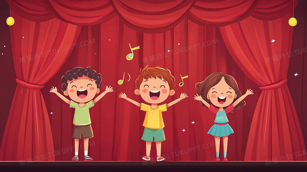 本作品内容为卡通唱歌舞台音乐插画, 格式为 jpg, 大小2 MB, 图片尺寸为2912 x 1632, 源文件无水印, 欢迎使用熊猫办公。 如认为平台内容涉嫌侵权,可通过邮件:tousu@tukuppt.com提出书面通知,我们将及时处理。