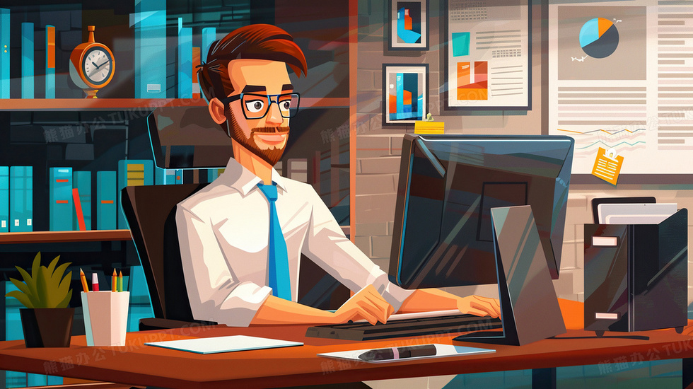 本作品内容为打工人商务办公职业工作插画, 格式为 jpg, 大小4 MB, 图片尺寸为2912 x 1632, 源文件无水印, 欢迎使用熊猫办公。 如认为平台内容涉嫌侵权,可通过邮件:tousu@tukuppt.com提出书面通知,我们将及时处理。