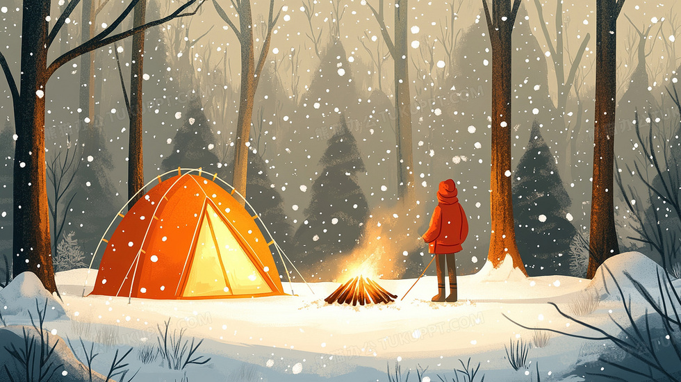本作品内容为冬天雪露营地烤火取暖插画, 格式为 jpg, 大小3 MB, 图片尺寸为2912 x 1632, 源文件无水印, 欢迎使用熊猫办公。 如认为平台内容涉嫌侵权,可通过邮件:tousu@tukuppt.com提出书面通知,我们将及时处理。