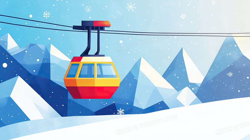 本作品内容为冬季缆车场景插画, 格式为 jpg, 大小2 MB, 图片尺寸为2912 x 1632, 源文件无水印, 欢迎使用熊猫办公。 如认为平台内容涉嫌侵权,可通过邮件:tousu@tukuppt.com提出书面通知,我们将及时处理。