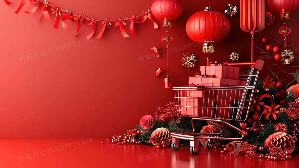 本作品内容为3d年货节购物车背景, 格式为 jpg, 大小3 MB, 图片尺寸为2912 x 1632, 作品中背景图片无需修改, 源文件无水印,可以直接使用, 欢迎使用熊猫办公。 如认为平台内容涉嫌侵权,可通过邮件:tousu@tukuppt.com提出书面通知,我们将及时处理。