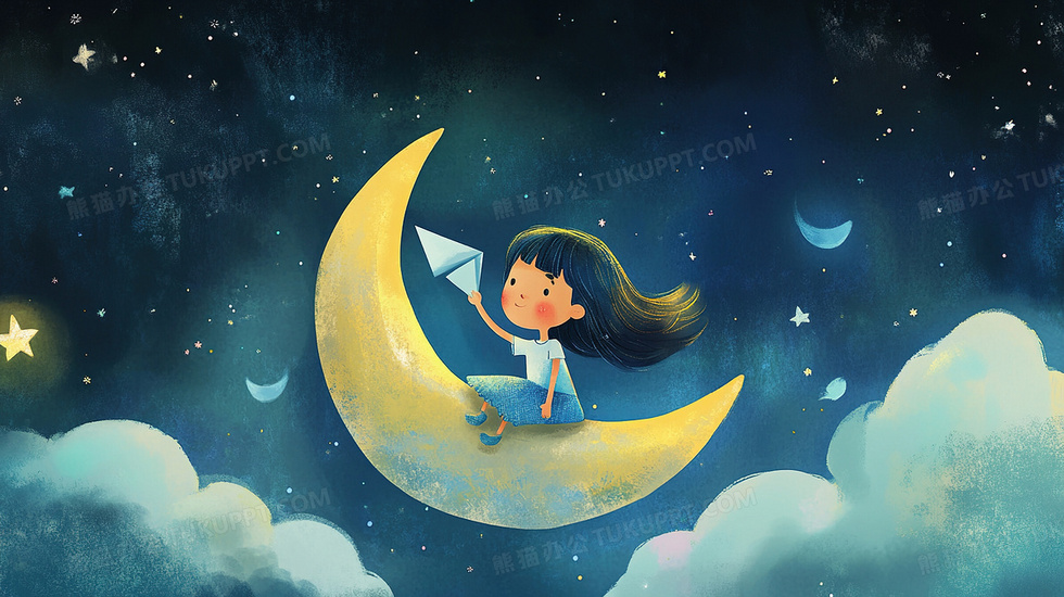 本作品内容为女孩月亮梦幻治愈唯美风景插画, 格式为 jpg, 大小3 MB, 图片尺寸为2912 x 1632, 源文件无水印, 欢迎使用熊猫办公。 如认为平台内容涉嫌侵权,可通过邮件:tousu@tukuppt.com提出书面通知,我们将及时处理。