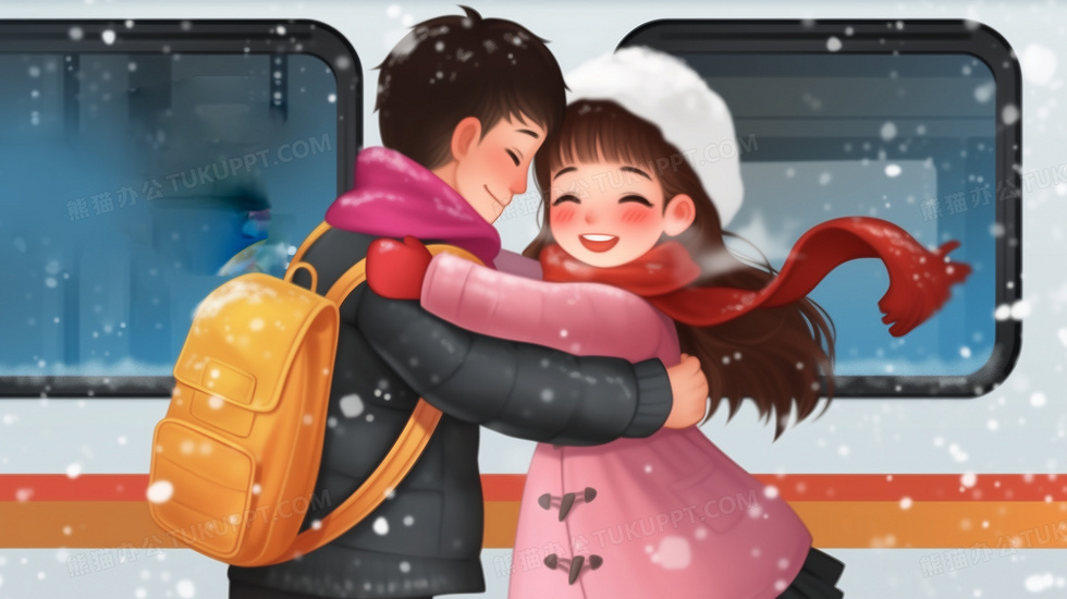 本作品内容为男孩迎接女孩下火车插画, 格式为 jpg, 大小5 MB, 图片尺寸为2912 x 1632, 源文件无水印, 欢迎使用熊猫办公。 如认为平台内容涉嫌侵权,可通过邮件:tousu@tukuppt.com提出书面通知,我们将及时处理。