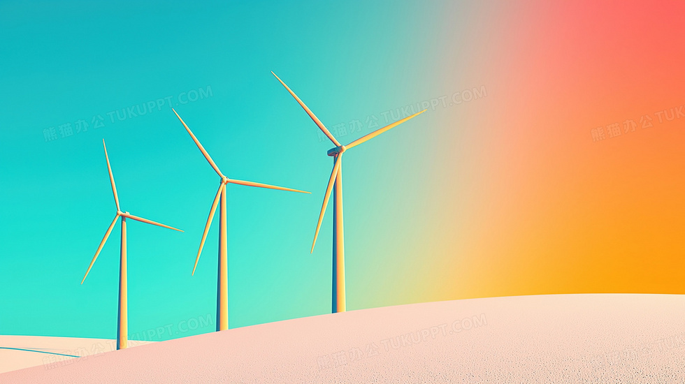 本作品内容为新能源电力风车环保背景, 格式为 jpg, 大小2 MB, 图片尺寸为2912 x 1632, 作品中背景图片无需修改, 源文件无水印,可以直接使用, 欢迎使用熊猫办公。 如认为平台内容涉嫌侵权,可通过邮件:tousu@tukuppt.com提出书面通知,我们将及时处理。