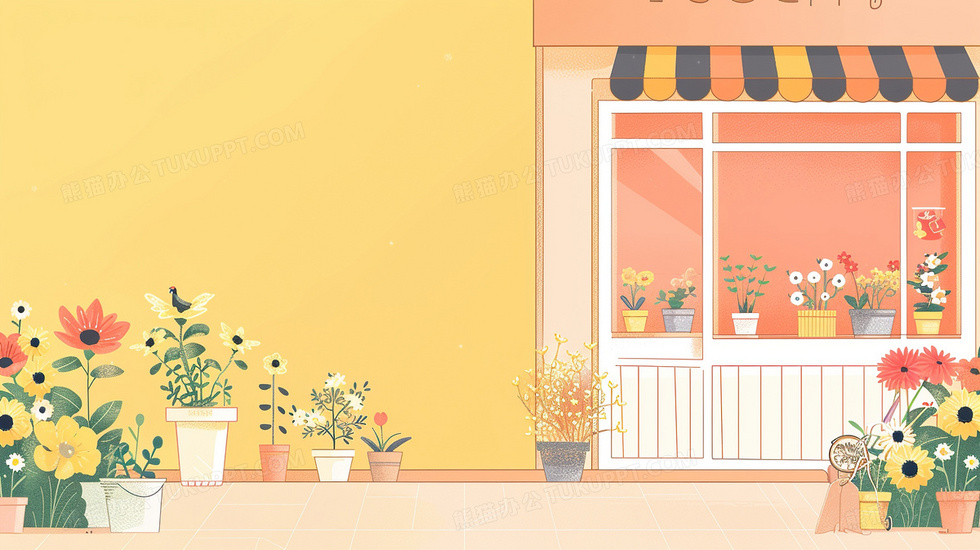 本作品内容为卡通花店电商促销宣传消费背景, 格式为 jpg, 大小3 MB, 图片尺寸为2912 x 1632, 作品中背景图片无需修改, 源文件无水印,可以直接使用, 欢迎使用熊猫办公。 如认为平台内容涉嫌侵权,可通过邮件:tousu@tukuppt.com提出书面通知,我们将及时处理。