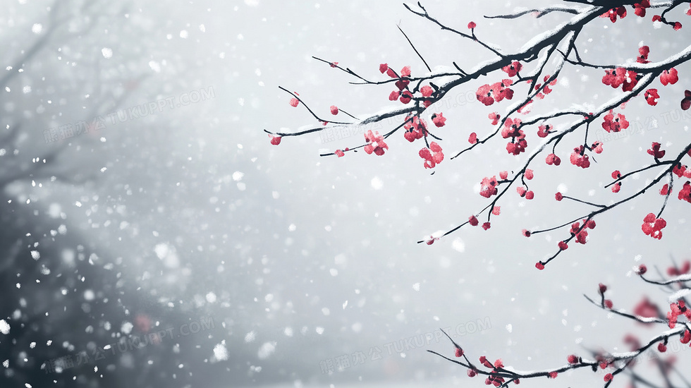 本作品内容为冬季雪天红色梅花简洁背景, 格式为 jpg, 大小2 MB, 图片尺寸为2912 x 1632, 作品中背景图片无需修改, 源文件无水印,可以直接使用, 欢迎使用熊猫办公。 如认为平台内容涉嫌侵权,可通过邮件:tousu@tukuppt.com提出书面通知,我们将及时处理。