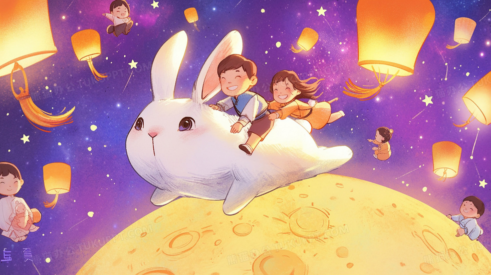 本作品内容为中秋坐着月兔空中飞翔的孩子插画, 格式为 jpg, 大小3 MB, 图片尺寸为2912 x 1632, 源文件无水印, 欢迎使用熊猫办公。 如认为平台内容涉嫌侵权,可通过邮件:tousu@tukuppt.com提出书面通知,我们将及时处理。