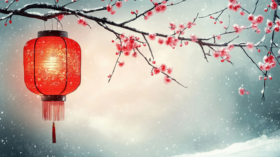 本作品内容为梅花灯笼冬天立冬雪景背景, 格式为 jpg, 大小3 MB, 图片尺寸为2912 x 1632, 作品中背景图片无需修改, 源文件无水印,可以直接使用, 欢迎使用熊猫办公。 如认为平台内容涉嫌侵权,可通过邮件:tousu@tukuppt.com提出书面通知,我们将及时处理。