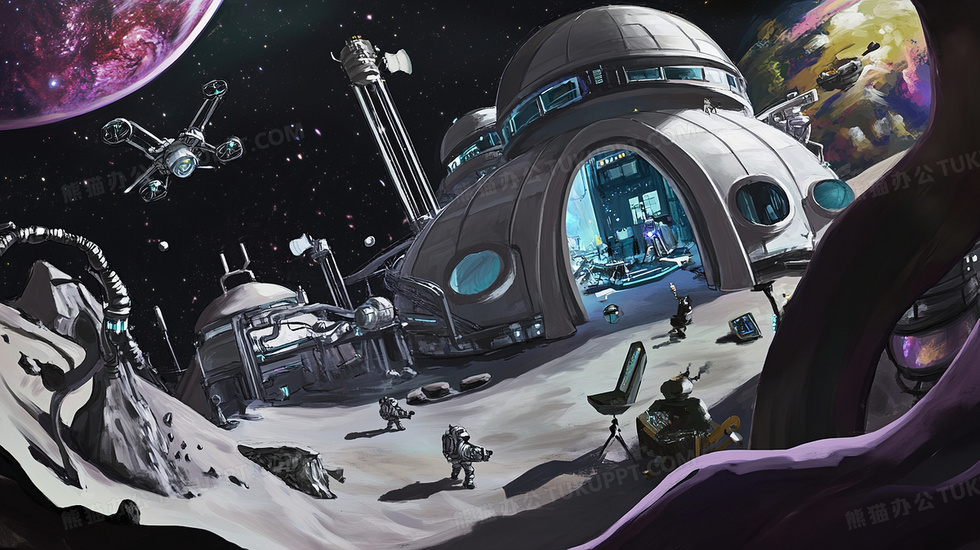 本作品内容为星空航天月球基地插画, 格式为 jpg, 大小3 MB, 图片尺寸为2912 x 1632, 源文件无水印, 欢迎使用熊猫办公。 如认为平台内容涉嫌侵权,可通过邮件:tousu@tukuppt.com提出书面通知,我们将及时处理。