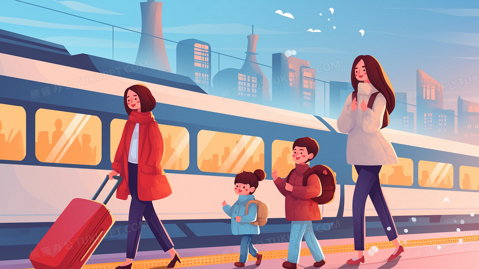 本作品内容为春运一家人赶高铁回家过年插画, 格式为 jpg, 大小2 MB, 图片尺寸为2912 x 1632, 源文件无水印, 欢迎使用熊猫办公。 如认为平台内容涉嫌侵权,可通过邮件:tousu@tukuppt.com提出书面通知,我们将及时处理。