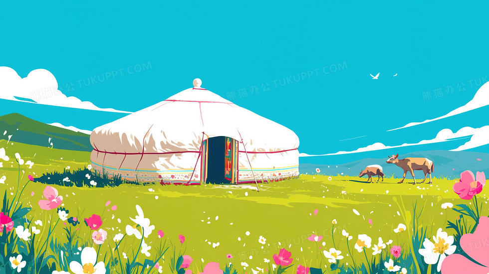 本作品内容为大自然草原蒙古包风景插画, 格式为 jpg, 大小2 MB, 图片尺寸为2912 x 1632, 源文件无水印, 欢迎使用熊猫办公。 如认为平台内容涉嫌侵权,可通过邮件:tousu@tukuppt.com提出书面通知,我们将及时处理。