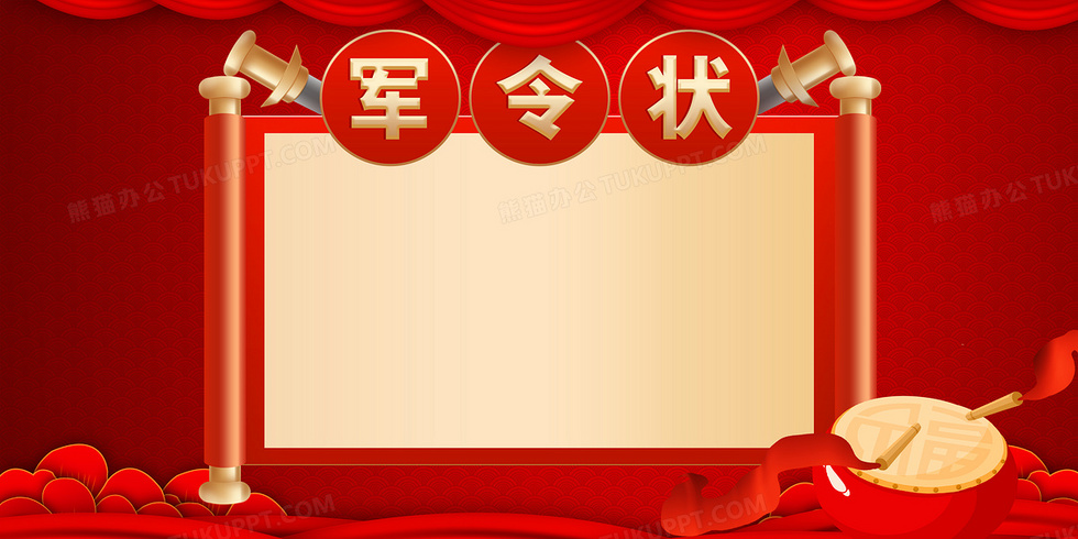 本作品内容为红色商务年会军令状背景, 格式为 psd, 大小40 MB, 图片尺寸为4724 x 2362, 作品中背景图片无需修改, 源文件无水印,可以直接使用, 欢迎使用熊猫办公。 如认为平台内容涉嫌侵权,可通过邮件:tousu@tukuppt.com提出书面通知,我们将及时处理。