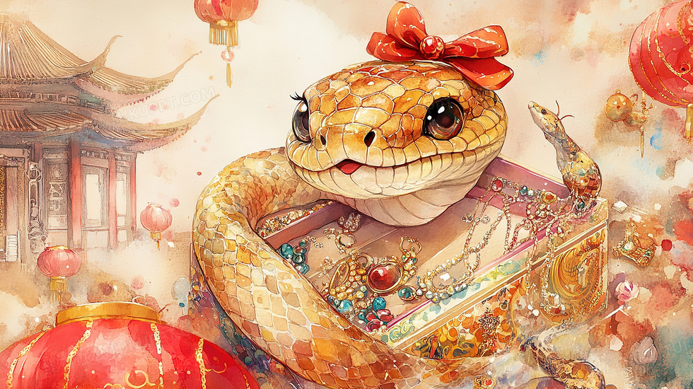 本作品内容为水墨百宝箱和蝴蝶结黄蛇创意插画, 格式为 jpg, 大小5 MB, 图片尺寸为2912 x 1632, 源文件无水印, 欢迎使用熊猫办公。 如认为平台内容涉嫌侵权,可通过邮件:tousu@tukuppt.com提出书面通知,我们将及时处理。