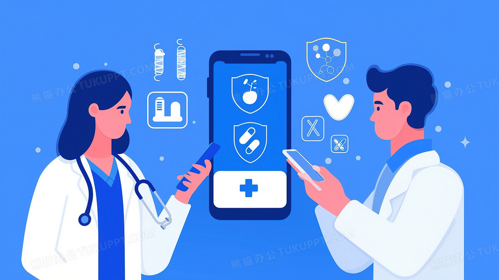 本作品内容为医生线上会诊治疗插画, 格式为 jpg, 大小2 MB, 图片尺寸为2912 x 1632, 源文件无水印, 欢迎使用熊猫办公。 如认为平台内容涉嫌侵权,可通过邮件:tousu@tukuppt.com提出书面通知,我们将及时处理。