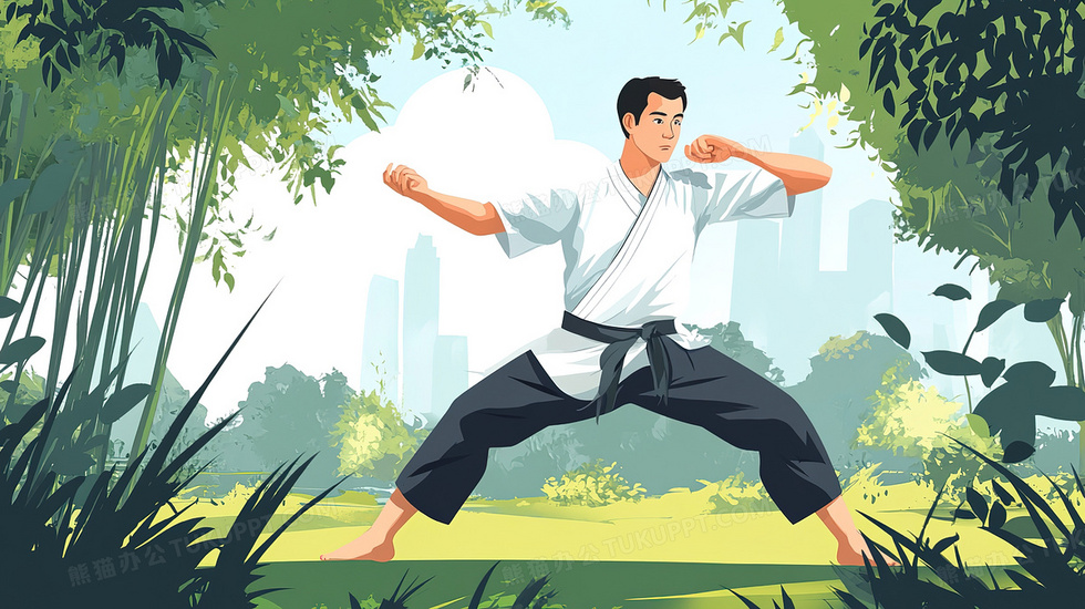 本作品内容为清晨公园练习中国功夫太极拳男子插画, 格式为 jpg, 大小3 MB, 图片尺寸为2912 x 1632, 源文件无水印, 欢迎使用熊猫办公。 如认为平台内容涉嫌侵权,可通过邮件:tousu@tukuppt.com提出书面通知,我们将及时处理。