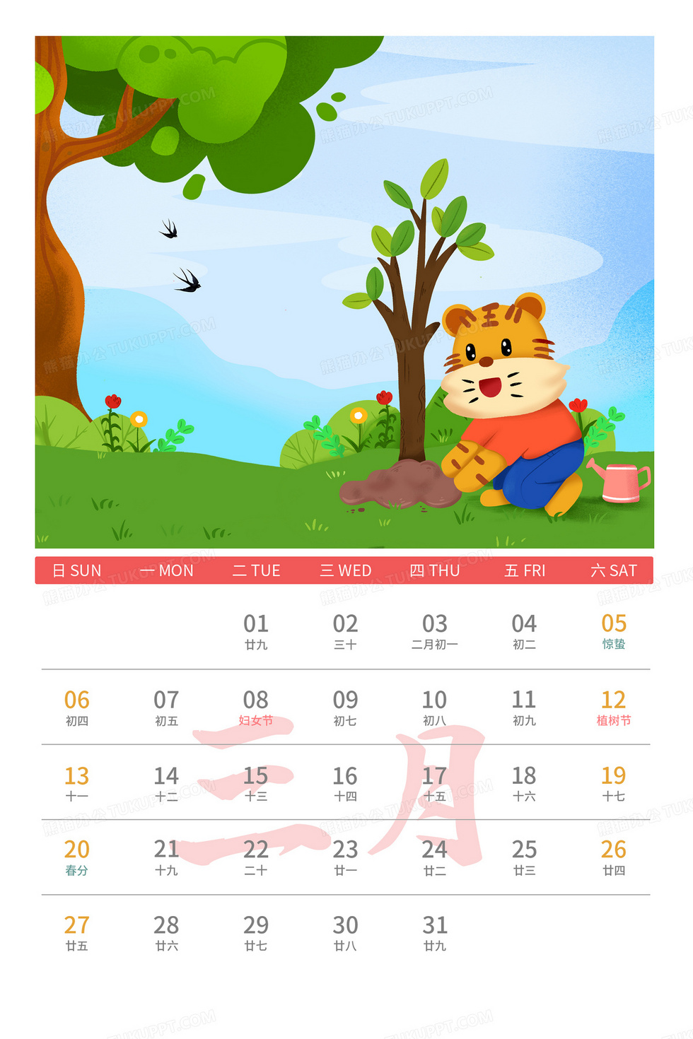 本作品内容为2022虎年日历三月份插画背景, 格式为 psd, 大小22 MB, 图片尺寸为3543 x 5315, 作品中背景图片无需修改, 源文件无水印,可以直接使用, 欢迎使用熊猫办公。 如认为平台内容涉嫌侵权,可通过邮件:tousu@tukuppt.com提出书面通知,我们将及时处理。