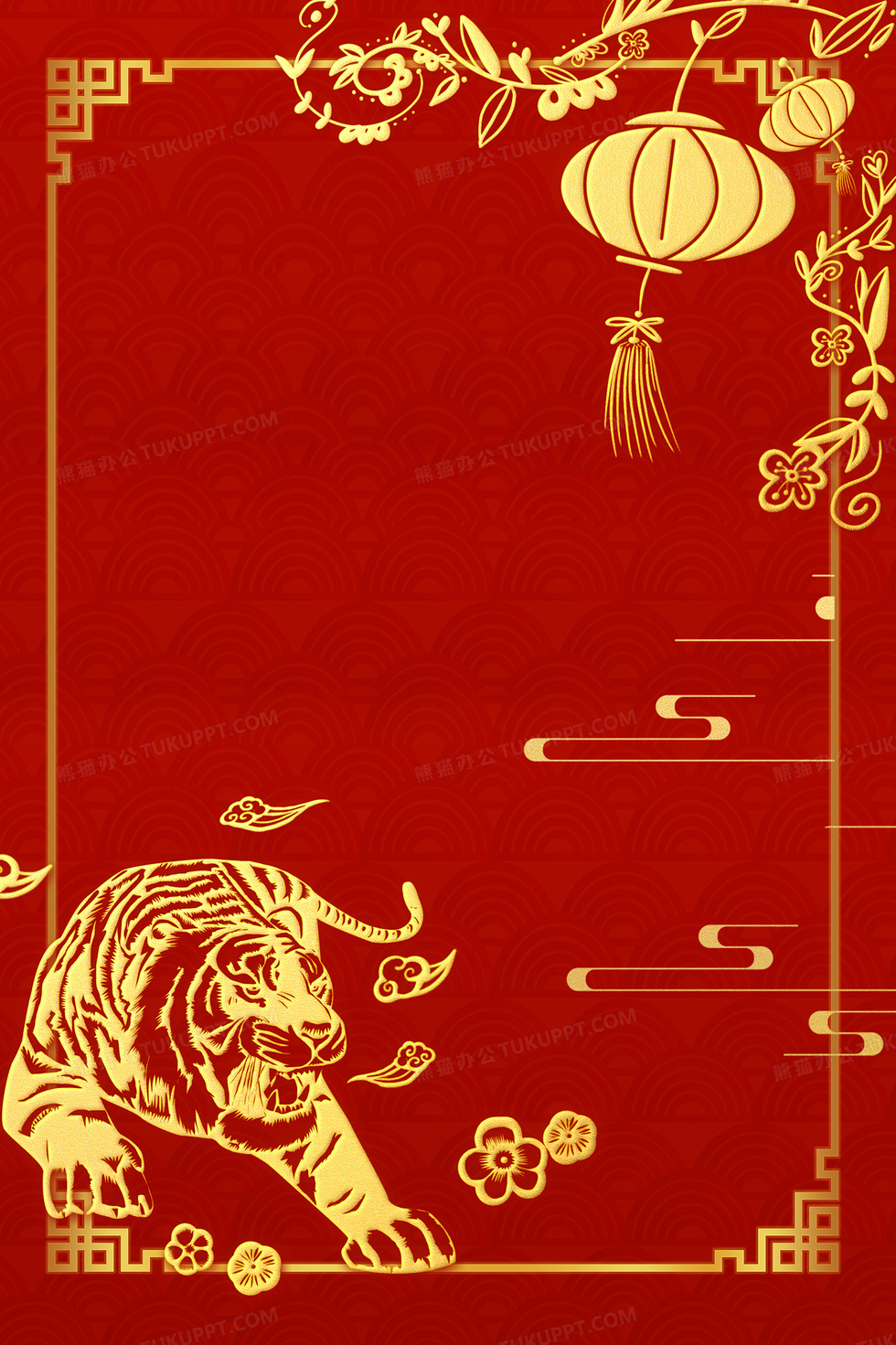 本作品内容为红金剪纸风线条虎年2022背景, 格式为 psd, 大小58 MB, 图片尺寸为3543 x 5316, 作品中背景图片无需修改, 源文件无水印,可以直接使用, 欢迎使用熊猫办公。 如认为平台内容涉嫌侵权,可通过邮件:tousu@tukuppt.com提出书面通知,我们将及时处理。