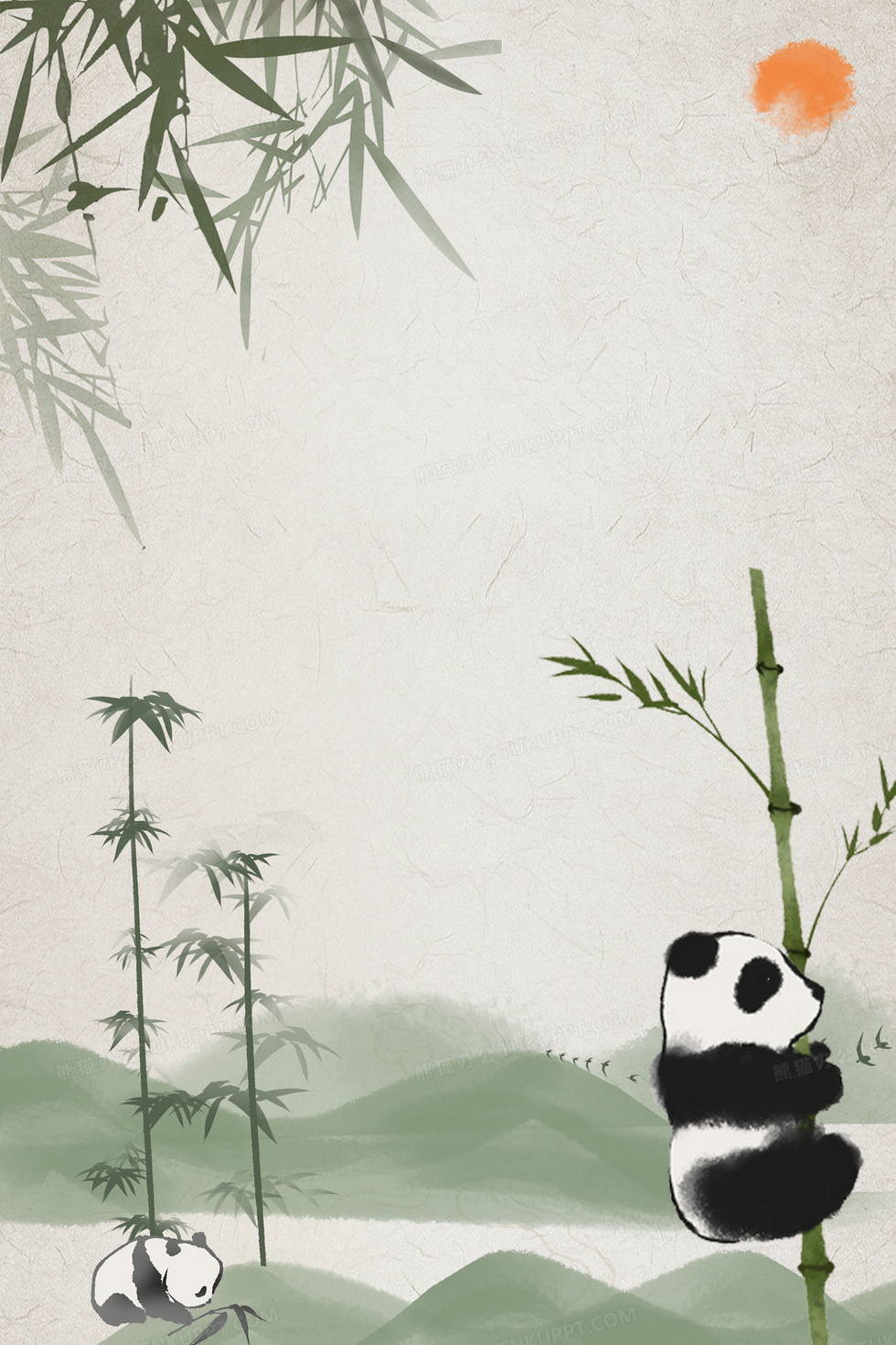 本作品内容为水墨中国风竹林熊猫可爱动物背景, 格式为 psd, 大小156 MB, 图片尺寸为3542 x 5317, 作品中背景图片无需修改, 源文件无水印,可以直接使用, 欢迎使用熊猫办公。 如认为平台内容涉嫌侵权,可通过邮件:tousu@tukuppt.com提出书面通知,我们将及时处理。