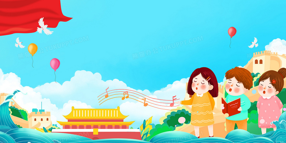 本作品内容为卡通风歌唱祖国卡通党建童心向党背景, 格式为 psd, 大小20 MB, 图片尺寸为4724 x 2362, 作品中背景图片无需修改, 源文件无水印,可以直接使用, 欢迎使用熊猫办公。 如认为平台内容涉嫌侵权,可通过邮件:tousu@tukuppt.com提出书面通知,我们将及时处理。