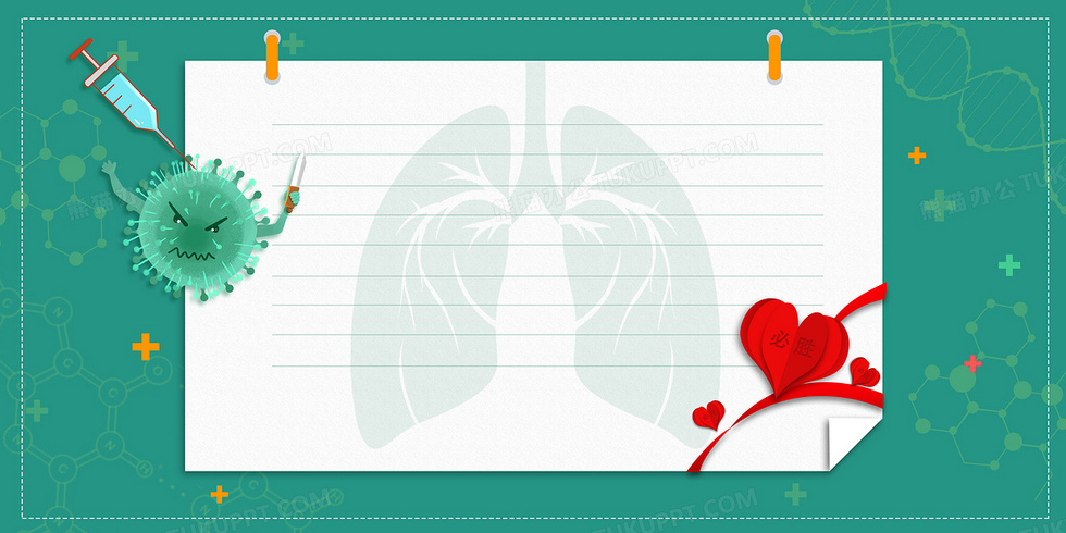 本作品内容为绿色医疗抗击湖南肺炎病毒卡通医疗背景, 格式为 psd, 大小37 MB, 图片尺寸为4724 x 2362, 作品中背景图片无需修改, 源文件无水印,可以直接使用, 欢迎使用熊猫办公。 如认为平台内容涉嫌侵权,可通过邮件:tousu@tukuppt.com提出书面通知,我们将及时处理。