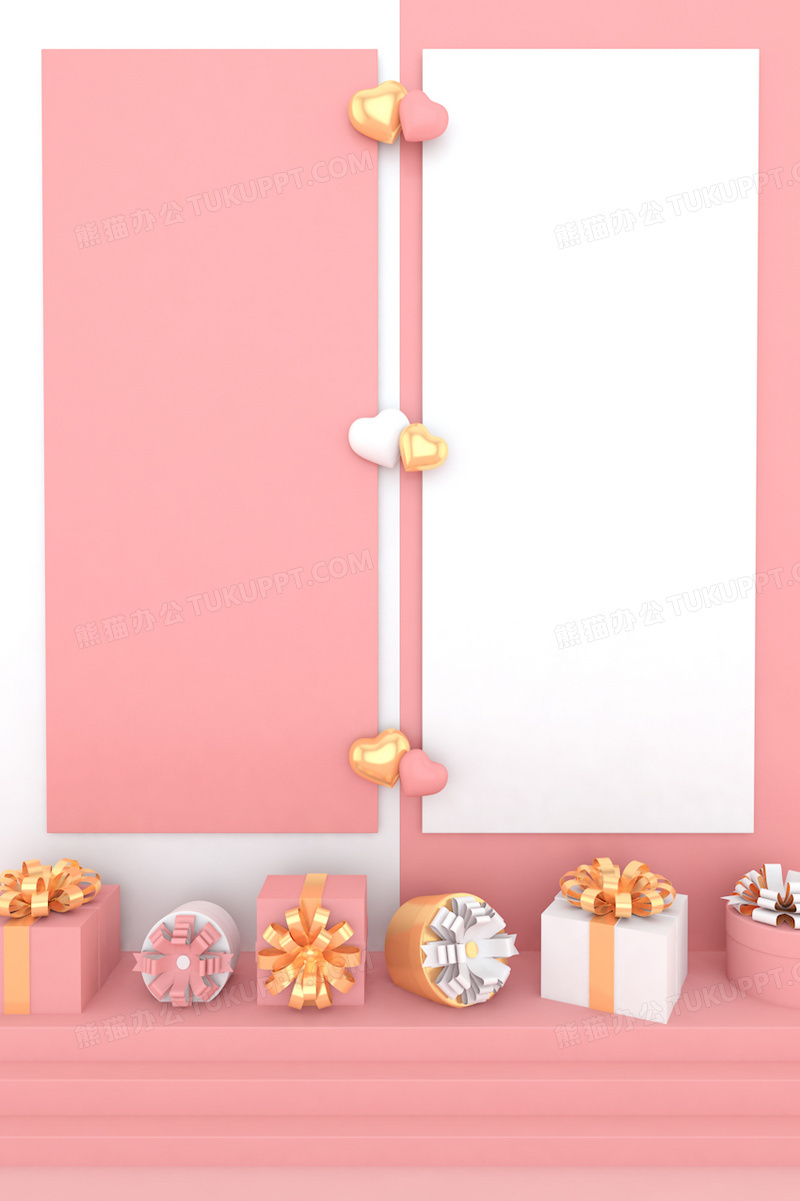 本作品内容为粉色温馨C4D立体礼物盒背景, 格式为 psd, 大小2 MB, 图片尺寸为850 x 1276, 作品中背景图片无需修改, 源文件无水印,可以直接使用, 欢迎使用熊猫办公。 如认为平台内容涉嫌侵权,可通过邮件:tousu@tukuppt.com提出书面通知,我们将及时处理。
