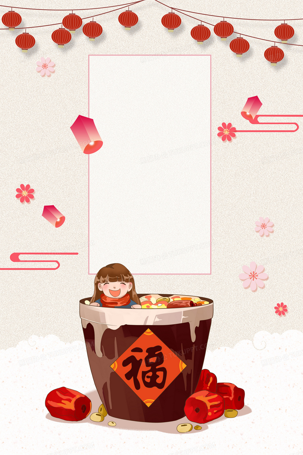 本作品内容为传统节日腊八节卡通腊八粥简约背景, 格式为 psd, 大小56 MB, 图片尺寸为3543 x 5315, 作品中背景图片无需修改, 源文件无水印,可以直接使用, 欢迎使用熊猫办公。 如认为平台内容涉嫌侵权,可通过邮件:tousu@tukuppt.com提出书面通知,我们将及时处理。