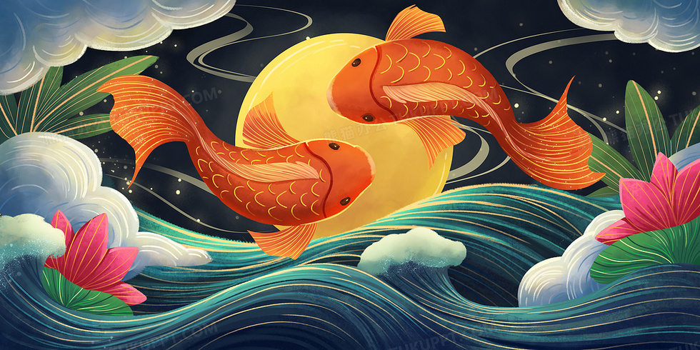本作品内容为中国风国潮锦鲤插画背景, 格式为 psd, 大小309 MB, 图片尺寸为9449 x 4724, 作品中背景图片无需修改, 源文件无水印,可以直接使用, 欢迎使用熊猫办公。 如认为平台内容涉嫌侵权,可通过邮件:tousu@tukuppt.com提出书面通知,我们将及时处理。