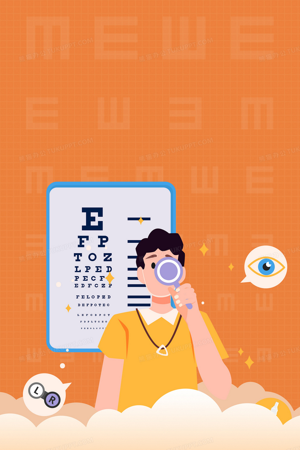 本作品内容为创意手绘扁平卡通清新爱眼日保护视力预防近视海报背景, 格式为 psd, 大小9 MB, 图片尺寸为3543 x 5315, 作品中背景图片无需修改, 源文件无水印,可以直接使用, 欢迎使用熊猫办公。 如认为平台内容涉嫌侵权,可通过邮件:tousu@tukuppt.com提出书面通知,我们将及时处理。