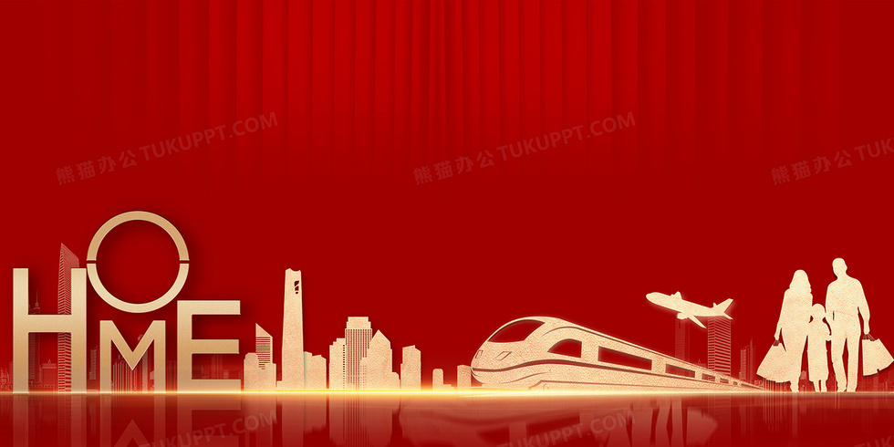 本作品内容为红色喜庆大气回家背景, 格式为 psd, 大小92 MB, 图片尺寸为4724 x 2362, 作品中背景图片无需修改, 源文件无水印,可以直接使用, 欢迎使用熊猫办公。 如认为平台内容涉嫌侵权,可通过邮件:tousu@tukuppt.com提出书面通知,我们将及时处理。
