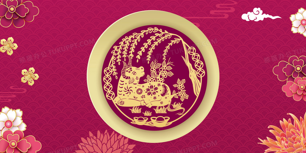 本作品内容为创意质感简约牛年背景, 格式为 psd, 大小23 MB, 图片尺寸为2362 x 1181, 作品中背景图片无需修改, 源文件无水印,可以直接使用, 欢迎使用熊猫办公。 如认为平台内容涉嫌侵权,可通过邮件:tousu@tukuppt.com提出书面通知,我们将及时处理。