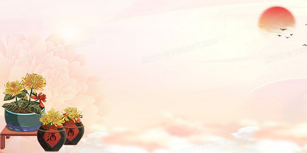 本作品内容为创意中国风简约赏菊背景, 格式为 psd, 大小21 MB, 图片尺寸为2362 x 1181, 作品中背景图片无需修改, 源文件无水印,可以直接使用, 欢迎使用熊猫办公。 如认为平台内容涉嫌侵权,可通过邮件:tousu@tukuppt.com提出书面通知,我们将及时处理。