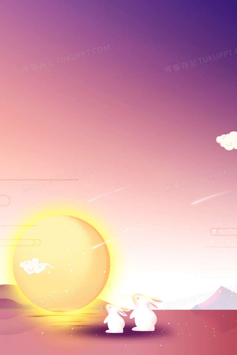 本作品内容为创意简约中秋节玉兔赏月背景, 格式为 psd, 大小4 MB, 图片尺寸为1181 x 1772, 作品中背景图片无需修改, 源文件无水印,可以直接使用, 欢迎使用熊猫办公。 如认为平台内容涉嫌侵权,可通过邮件:tousu@tukuppt.com提出书面通知,我们将及时处理。