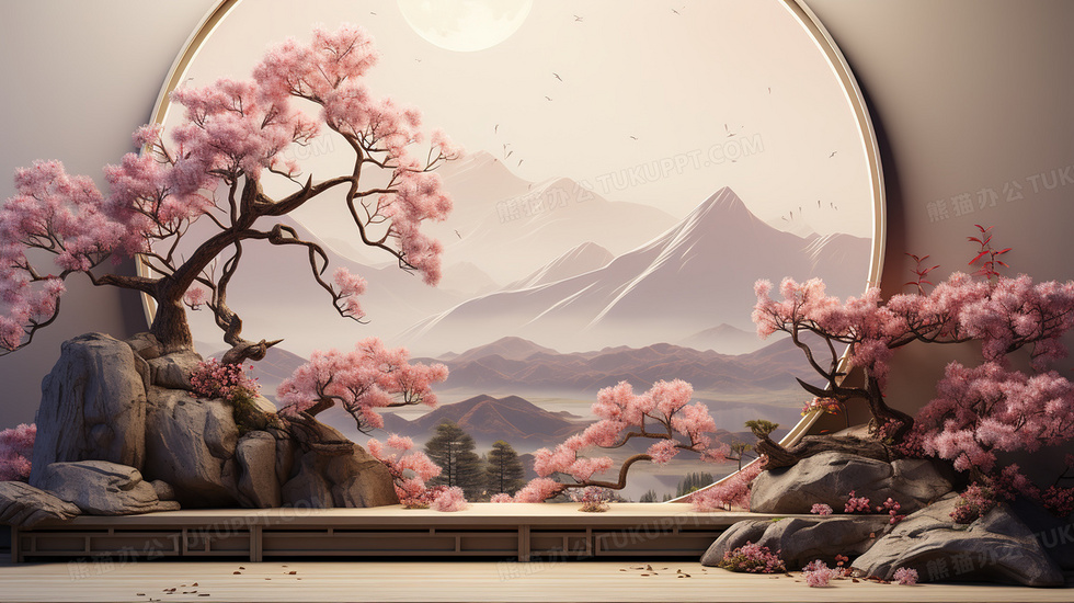 本作品内容为C4D粉梅山水古典电商展示台概念图片, 格式为 jpg, 大小7 MB, 图片尺寸为2912 x 1632, 源文件无水印, 欢迎使用熊猫办公。 如认为平台内容涉嫌侵权,可通过邮件:tousu@tukuppt.com提出书面通知,我们将及时处理。