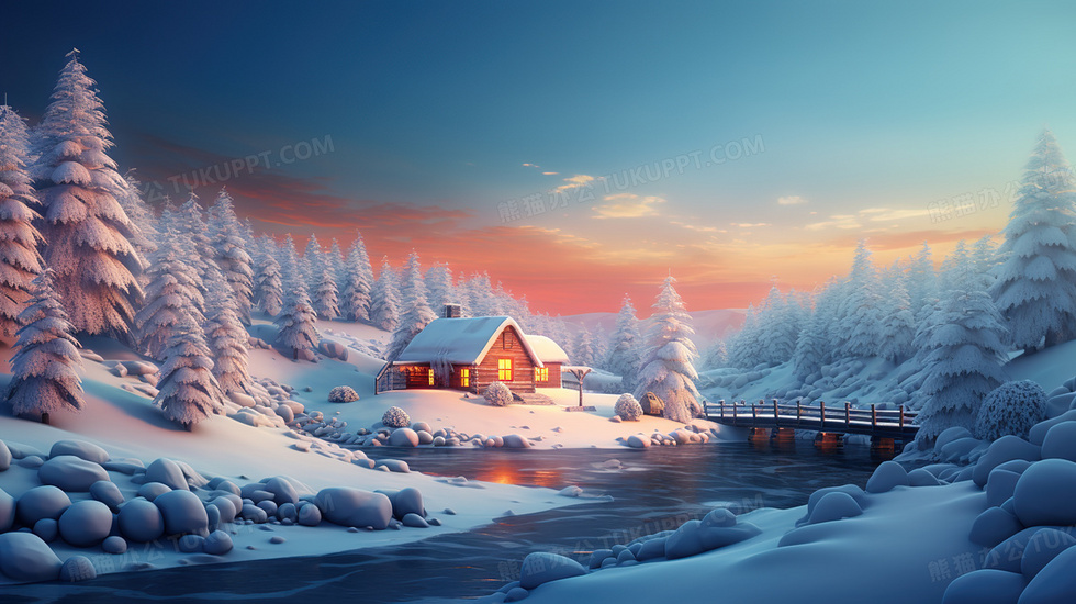本作品内容为冬季夕阳下的山谷雪景插画, 格式为 jpg, 大小6 MB, 图片尺寸为2912 x 1632, 源文件无水印, 欢迎使用熊猫办公。 如认为平台内容涉嫌侵权,可通过邮件:tousu@tukuppt.com提出书面通知,我们将及时处理。